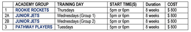 In 2025 there are 3 separate groups within the Victorian Junior Cricket Academy based on the player's age as at August 31, 2025: