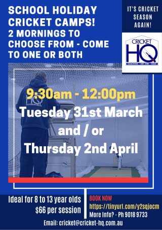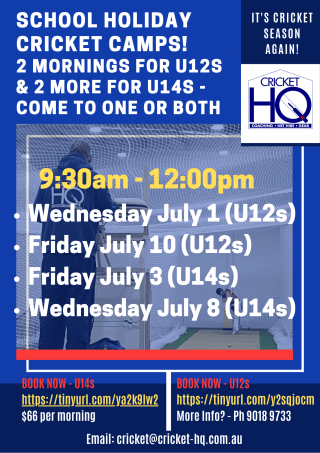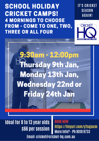Cricket HQ will be open Monday 3rd November (Cup Eve) and for those lucky enough to have the day off school, we will be running an U12 cricket camp from 10am to 12.30pm. Limited numbers, book now.... Read More…