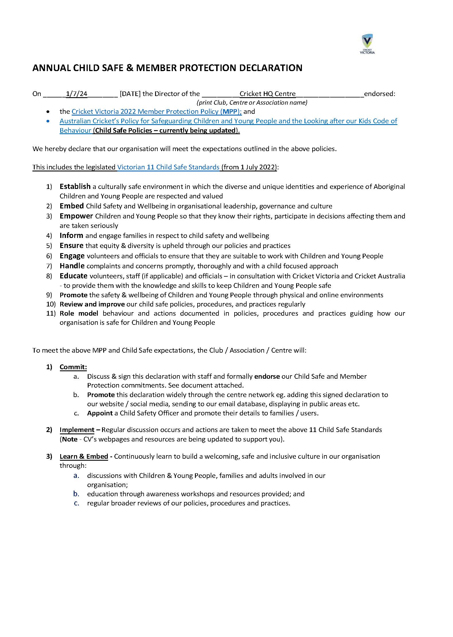 and check the website for further information https://www.cricketvictoria.com.au/child-safe-member-protection/