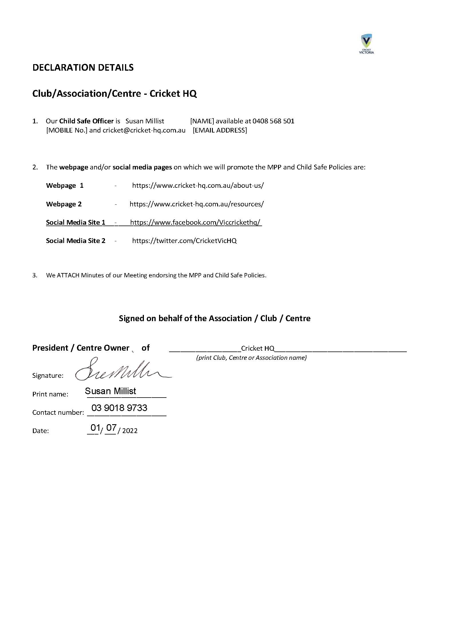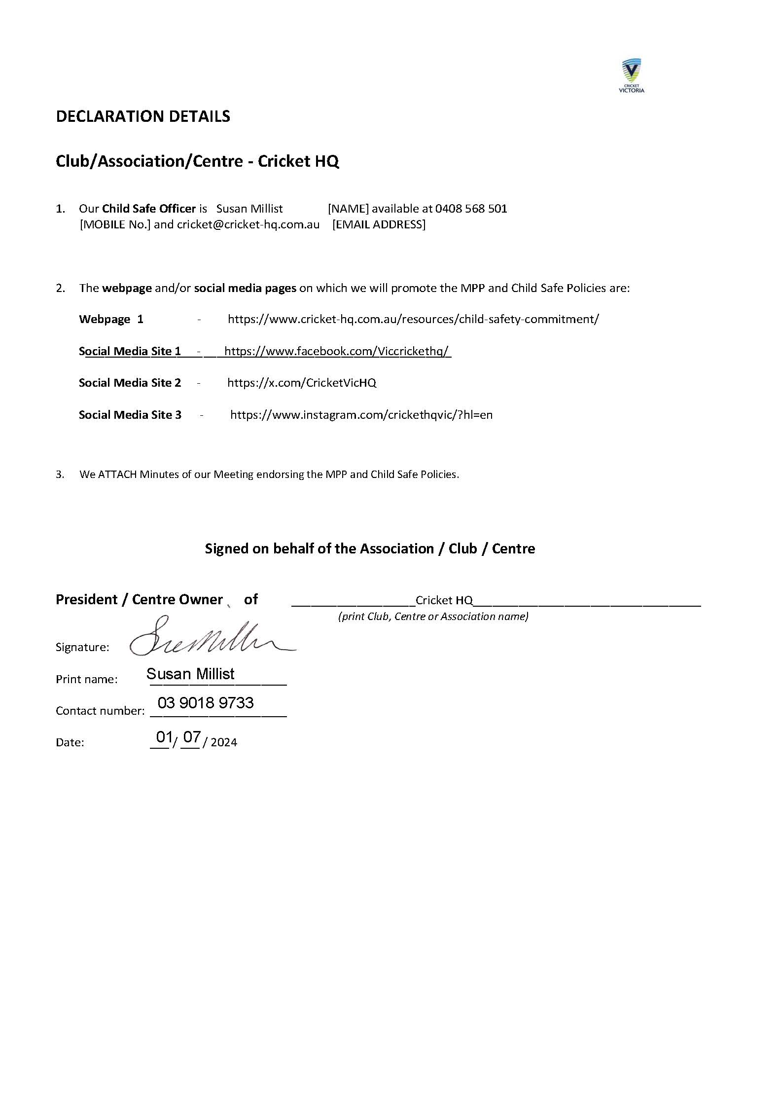 Any queries please contact our Child Safety Officer cricket@cricket-hq.com.au